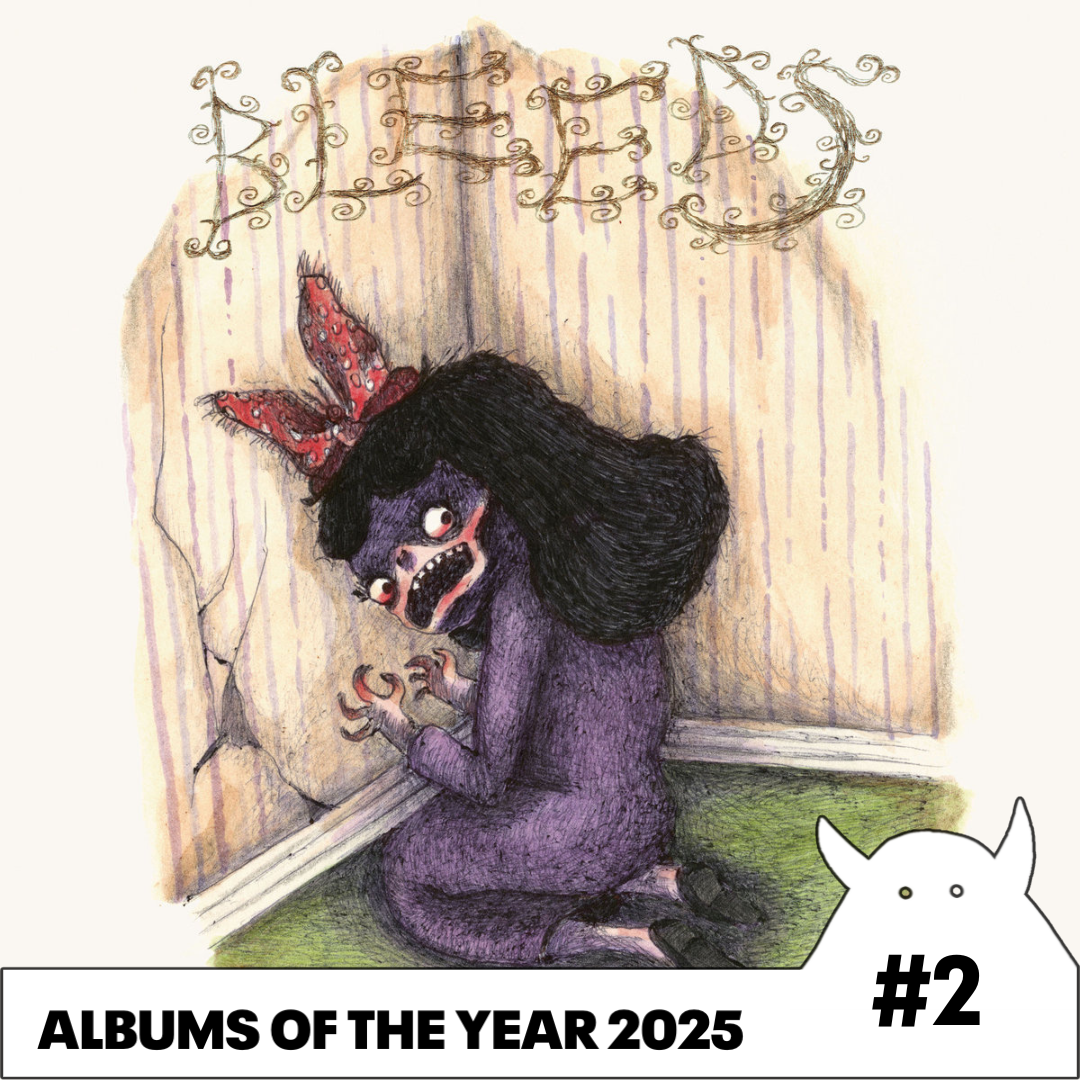 Can a self-portrait be a collage? Can empathy be autobiographical? What’s the point of living if we’re not trying to understand all the horror and humor that surrounds everything? These are a few of the questions lurking under the bleachers of Wednesday’s new album Bleeds, an intoxicating collection of narrative-heavy Southern rock that—like many of the most arresting passages from the North Carolina band’s highlight reel so far—thoughtfully explores the vivid link between curiosity and confession. Bleeds is not only the best Wednesday record—it’s also the most Wednesday record, a patchwork-style triumph of literary allusions and outlaw grit, of place-based poetry and hair-raising noise. Karly Hartzman—founder, frontwoman, and primary lyricist—credits Wednesday’s tightened grasp on their own identity to time spent collaborating on previous albums, plus a tour schedule that’s been both rewarding and relentless. “Bleeds is the spiritual successor to Rat Saw God, and I think the quintessential ‘Wednesday Creek Rock’ album,” Hartzman said, articulating satisfaction with the ways her band has sharpened its trademark sound, how they’ve refined the formula that makes them one of the most interesting rock bands of their generation. “This is what Wednesday songs are supposed to sound like,” she said. “We’ve devoted a lot of our lives to figuring this out—and I feel like we did.” Just like Rat Saw God, one of the defining rock & roll records of the 2020s so far, Bleeds came together at Drop of Sun in Asheville and was produced by Alex Farrar, who’s been recording the band since Twin Plagues. Hartzman again brought demos to the studio, where she and her bandmates—Xandy Chelmis (lap steel, pedal steel), Alan Miller (drums), Ethan Baechtold (bass, piano), and Jake “M.J.” Lenderman (guitar)—worked as a team to bulk-up the compositions with the exact right amounts of country truth-telling, indie-pop hooks, and noisy sludge. More than ever, the precise proportions were steered by the lyricism—not only its tone or subject matter, but also the actual sound of the words, as well as Hartzman’s masterfully subjective approach to detail selection. Every image or scene is filtered through Hartzman’s agile, writerly brain. The particulars deemed essential all contain revelations about Hartzman’s specific obsessions and vulnerabilities, about the fragmented way she processes the world. Maybe sometimes the best way to locate truth or pain or dignity within your own life story, Bleeds suggests, is by crawling into someone else’s.
