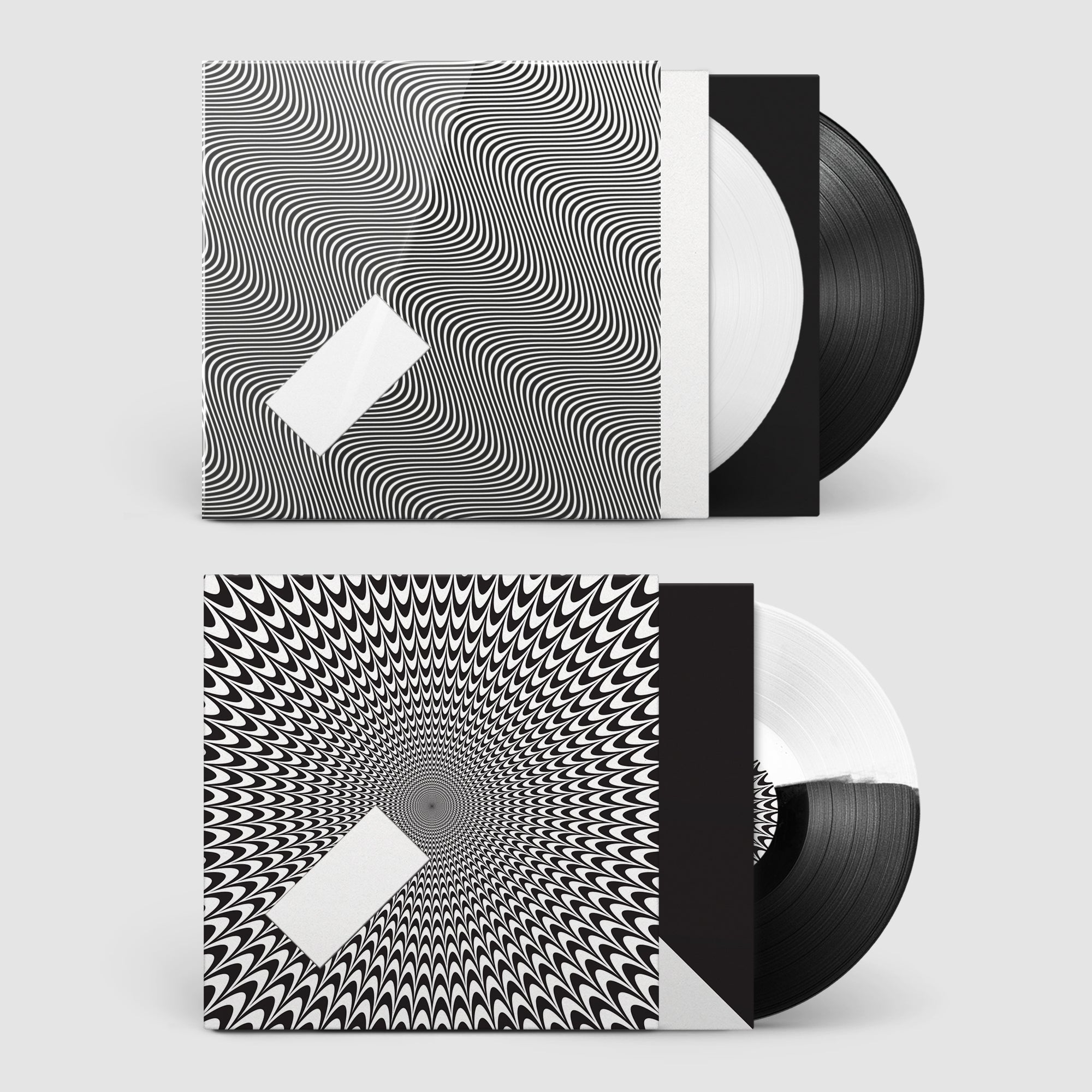 Album cut on two discs, one black, one white. Bonus black & white 12" with exclusive tracks