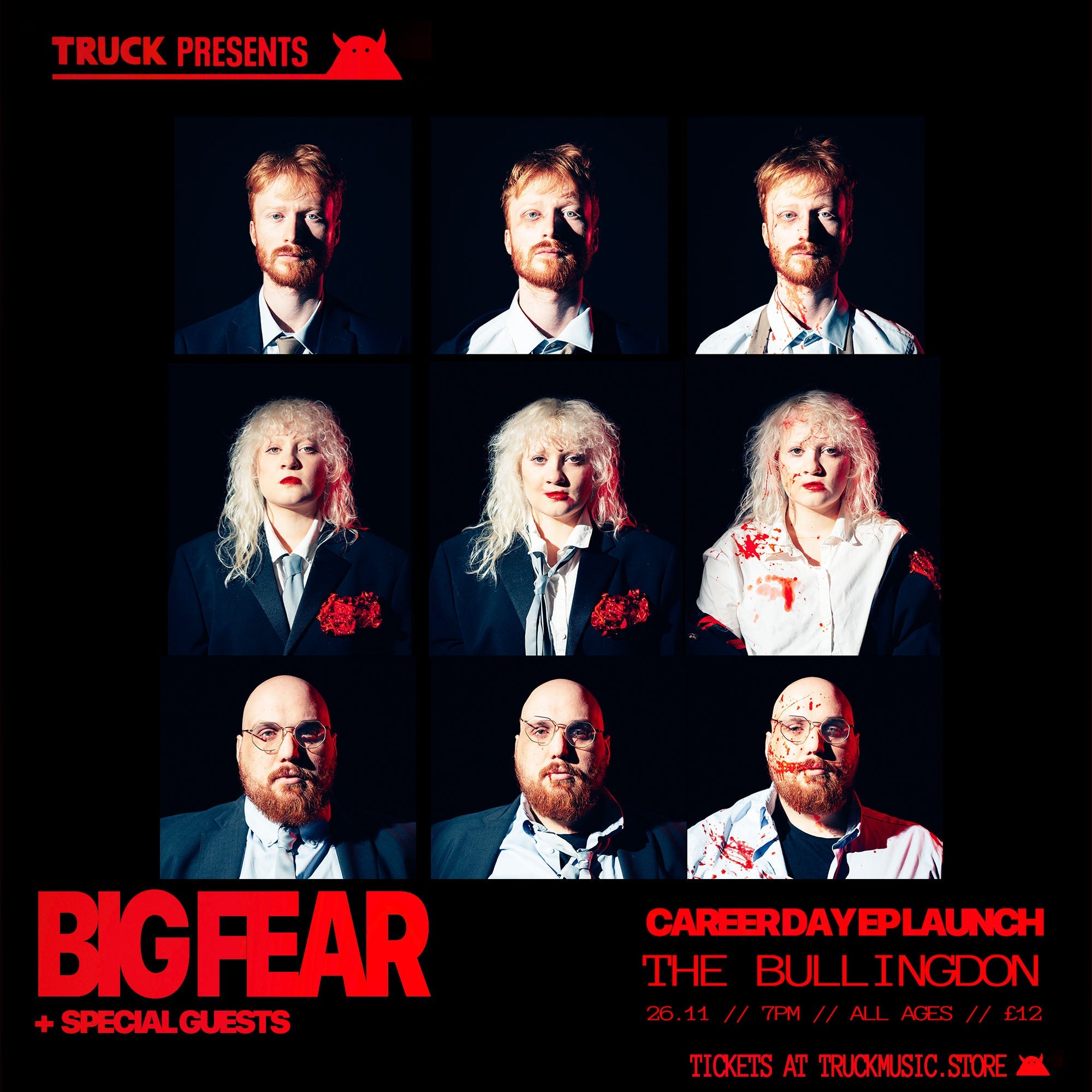 Join Big Fear as they celebrate the release of their debut EP Career Day with a headline show packed with synth-soaked drama and generational angst. Fronted by the magnetic Alice Edwards, Big Fear deliver a live experience that’s bold, theatrical, and unafraid to stare fear in the face—with a wink.