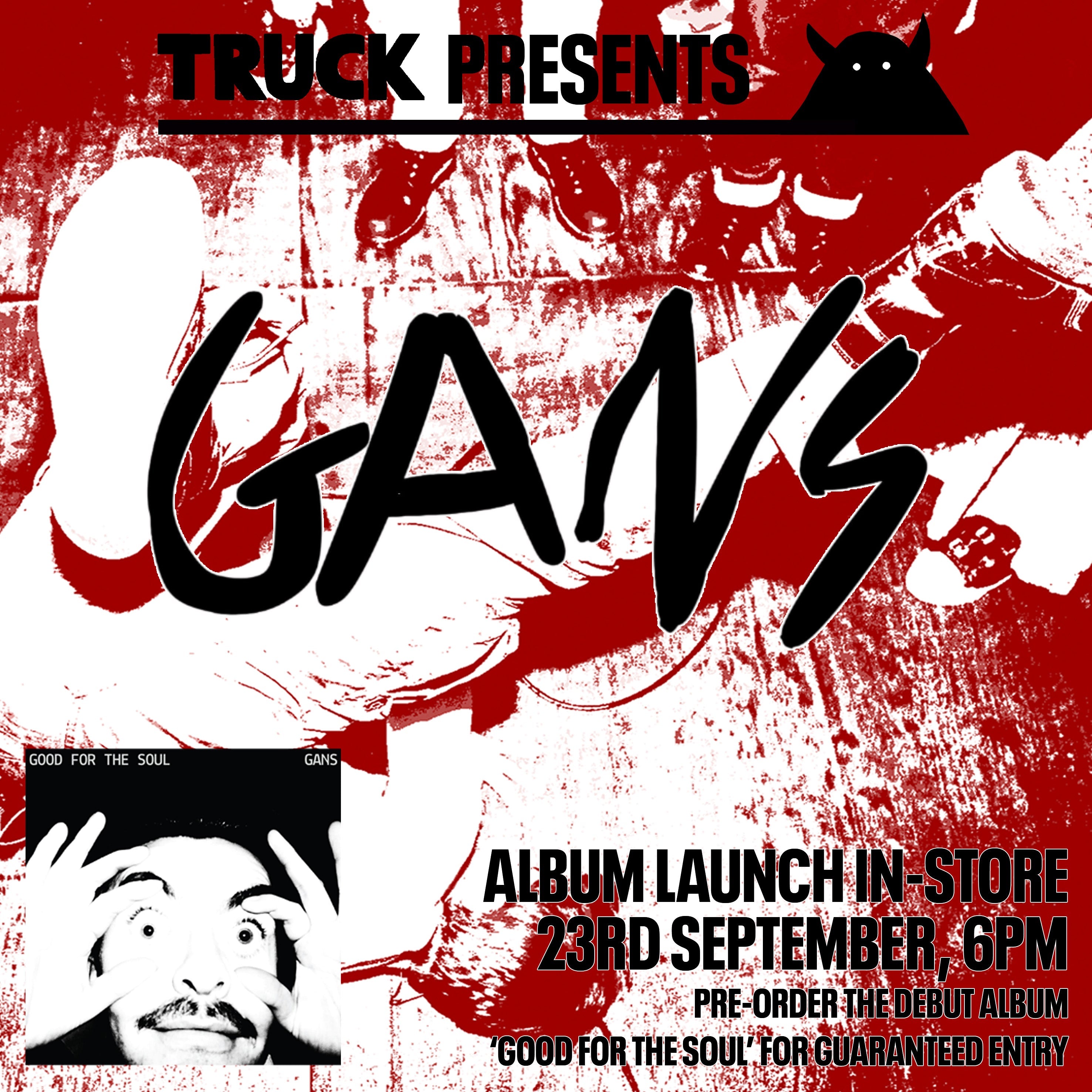 GANS bring their raw, rhythmic punk to the shop for an in-your-face in-store set, fresh off the release of their debut album GOOD FOR THE SOUL on Strap Originals. Hailing from Birmingham and rooted in the grit of the Black Country, the duo turn frustration and unease into something loud, urgent and cathartic. It’s going to be intimate, intense, and full of energy.
