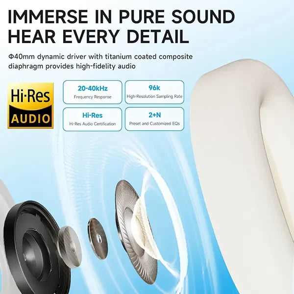 The 40mm dynamic driver provides an expansive soundstage and powerful bass, while the titanium-coated diaphragm ensures clear and transparent mid-high frequencies, making every listening session pure and enjoyable.