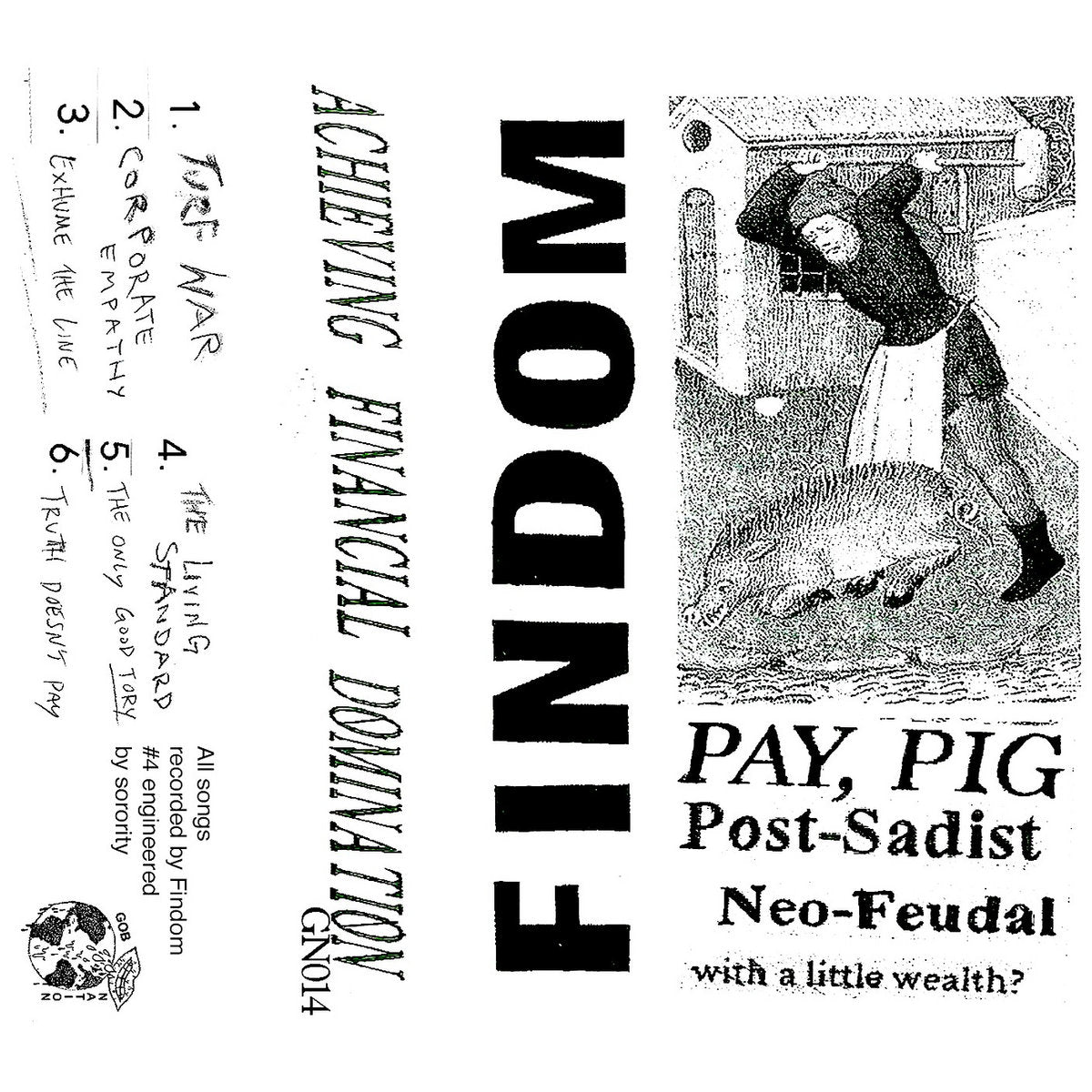 Findom know a thing about Britain’s death drive. They know that morbid fascinations of bad faith, morose binds and slow crawls have led us here. Their debut tape confronts the conceit of class deterioration, clashing together energies of No Wave, Jazz, Dub and Goth into a work that, through part satire and part protest, has the hooks to fight back. We are left with five tracks self-described as anti-jazz with an overarching structure that feels like a Killing Joke inspired noir thriller, where moments of dark aggression are sonically punctuated by open stretches of rhythmic disorientation.