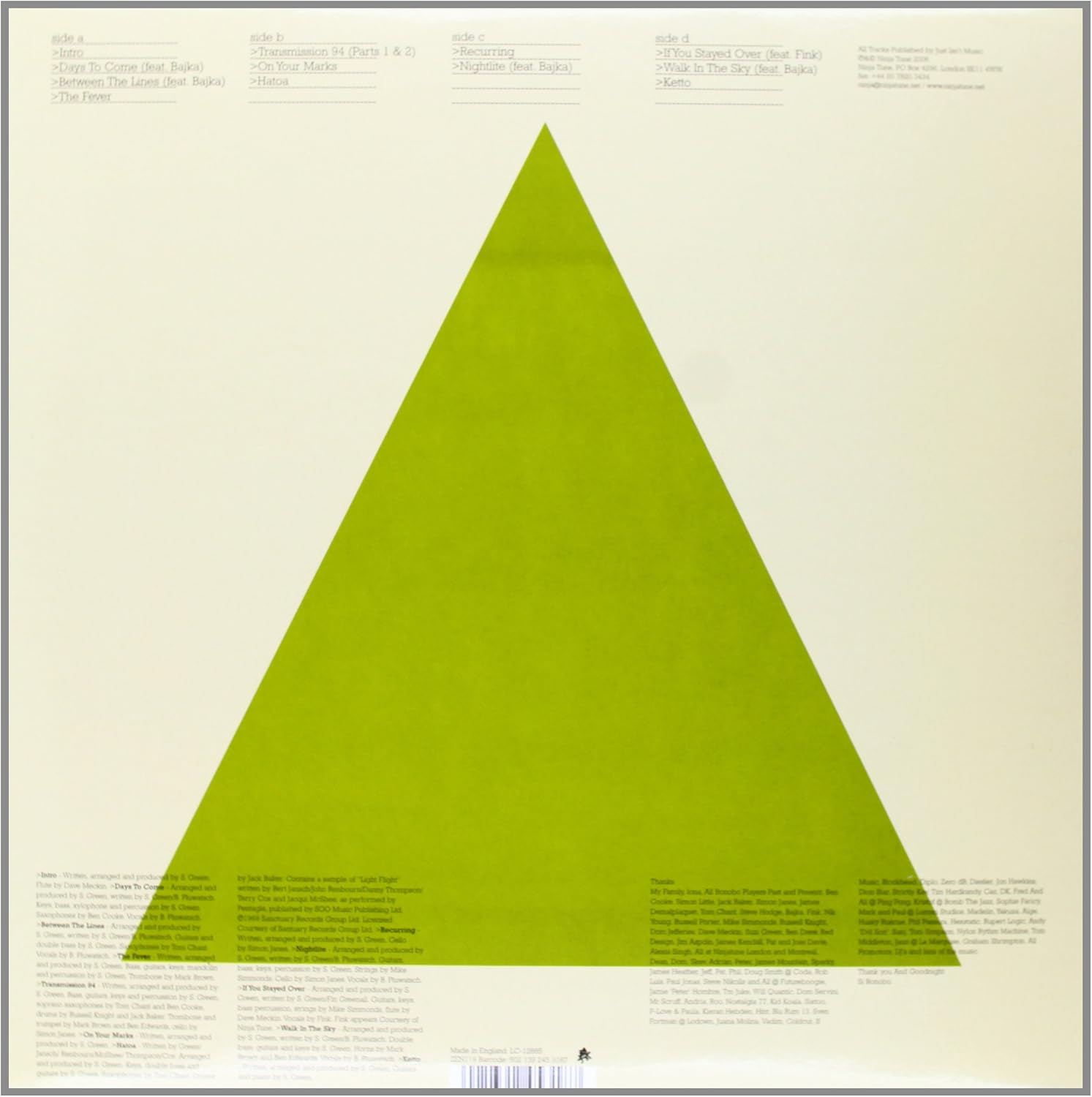 Simon Green aka Bonobo's third album contains the kind of quantum leap in quality that very few artists make. 'Days To Come' has the feeling of a classic all over - a big, brooding, emotional and uplifting record that you can dance to, do the dishes to, or sit and really study. Simon Green has always been expert at welding together music dripping with atmosphere, combining his own musical and technical talents in such a way as to make utterly organic-sounding machine music. This is not just a knob-twiddling producer but a multi-instrumentalist at work, who writes, plays and then manipulates almost every note of music he releases. And 'Days To Come' shows a new structural awareness growing from this, a feeling for the song form and the gradual build which raises it way above the work of many of his contemporaries and cries out for him to achieve the kind of mainstream success that his talent has long hinted at. Bonobo's debut album 'Animal Magic' was released by Brighton label TruThoughts just as the journalistic vogue for 'chill out' music began to peak. Having rejected the advances of more than one major label, Green decided to sign with Ninja Tune and for them he produced 'Dial M For Monkey', a brooding and intricate record which not only continued his move away from traditional sampling techniques, but broadsided the idea that he only made music for people to listen to in transcendental bubble bath yurts. Now, with 'Days To Come' the processes and techniques he developed on the transitional 'Dial M…' have reached fruition, mainly (though not solely) because this album could be seen as a collection of songs. The fantastic band (who have headlined the Big Chill and the Glade at Glastonbury), now also featuring Bajka on vocals, will be touring from this autumn onwards, and are set to transform these studio pieces into living, breathing music. The days to come look bright indeed, but sad and beautiful and lovely, too. Don't miss them..